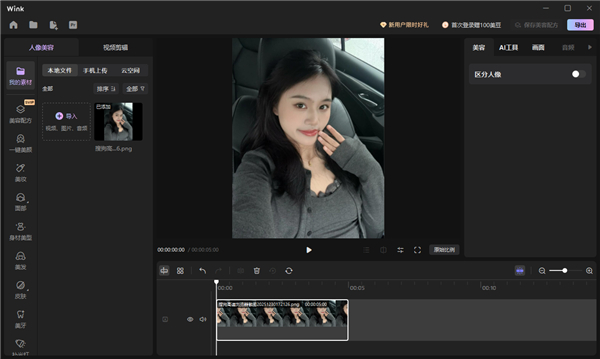 1、进入Wink电脑版界面,点击视频人像美容选项,这里我们这个功能为例子,如果用户想使用其它功能点击相应功能即可使用;