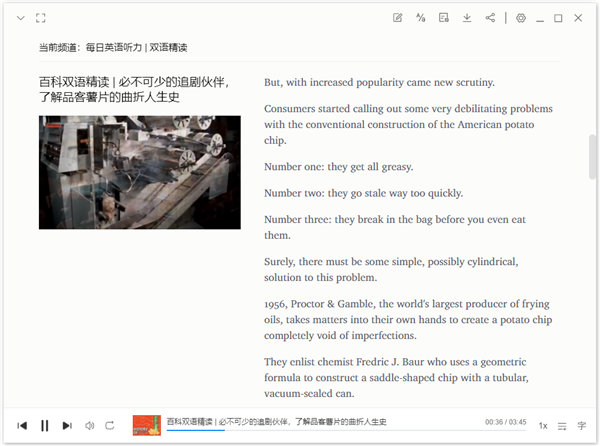 1、拥有每天更新的海量听力库,并独家提供智能语音高亮跟随功能 2、与拥有海量词库的《欧路词典》无缝集成,查词典、背单词轻松搞定 3、全新百科智能提示,让你训练听力的同时不知不觉增加英语词汇量 4、全新FM电台功能,实时流畅收听最新英语节目,锻炼英语听力必备 5、支持 听力上传,听众能在官网上传自己的资源,我们为您制作同步高亮字幕 6、可以和《欧路词典》同步生词本、笔记,学英语必备更新日志