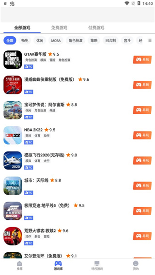 3、点击进入游戏库,各种免费游戏,付费游戏这里应有尽有。