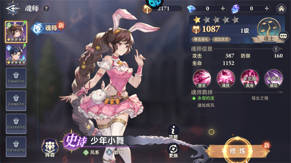 4、可以观察屏幕左下角的的魂力,小舞的魂力技能需要三点魂力,可以造成大量伤害,点击头像触发。
