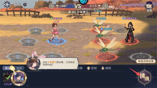 5、可以选择唐三上阵,随后点击屏幕右下角的“挑战”。
