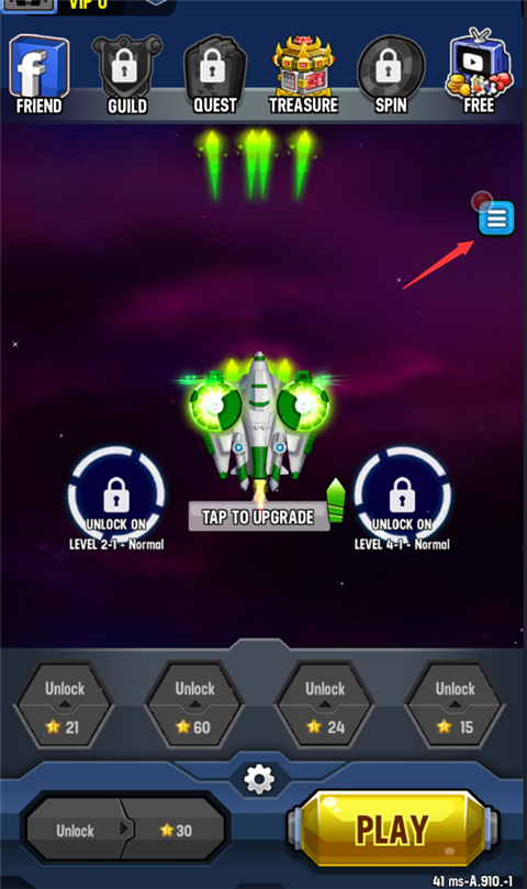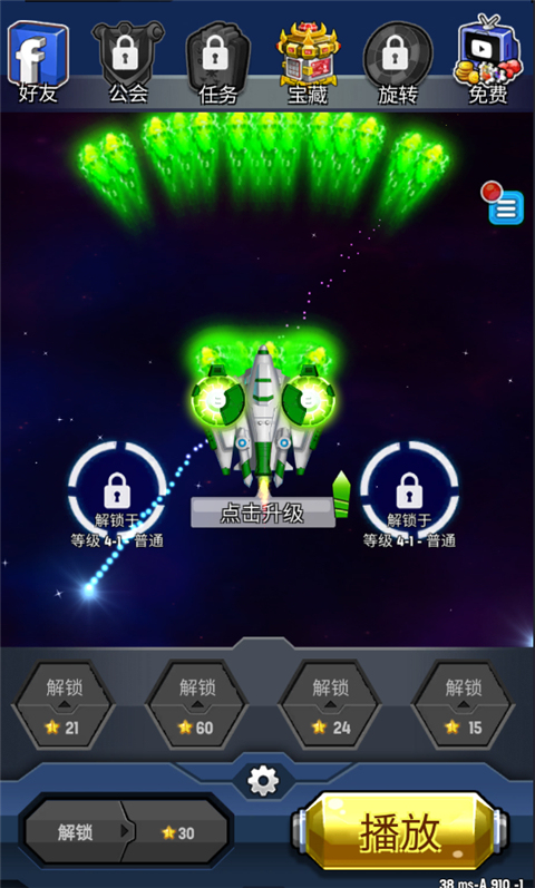 1、炫酷的闪电和特效 2、多种道具和敌方首领! 3、全球排行榜 4、幸运轮星际大战太空射击手游中文设置教程
