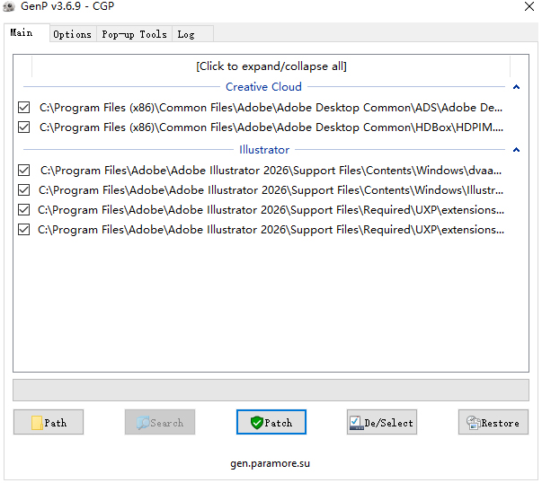 3、解压GenP.v3.6.9-CGP.rar,打开里面的exe文件(这里尽可能的关闭安全软件),点击Path添加应用程序的安装目录。
