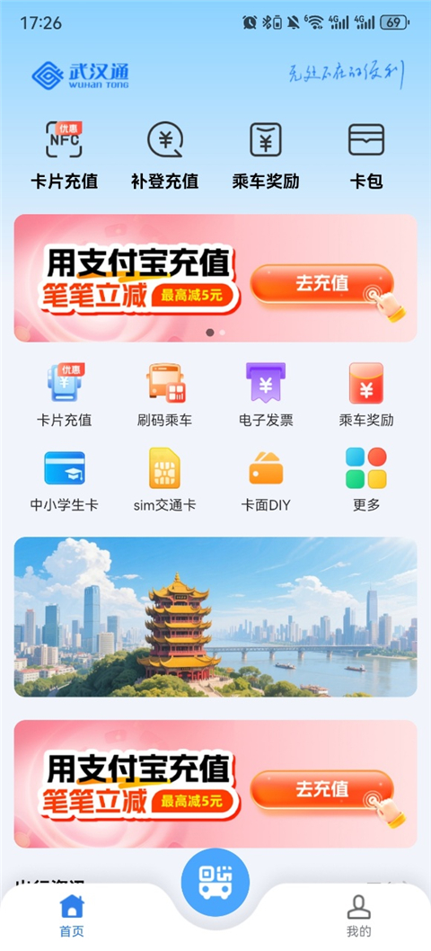 1、武汉通卡片充值生成补登订单; 2、武汉地铁扫码过闸; 3、武汉通卡片交易明细查询; 4、武汉通卡片历史售卡充值记录发票开取; 5、武汉通信息登记及卡片绑定; 6、公交智能线路及到站信息查询; 7、地铁站点信息及票价查询等功能。我的武汉通APP NFC卡片充值流程