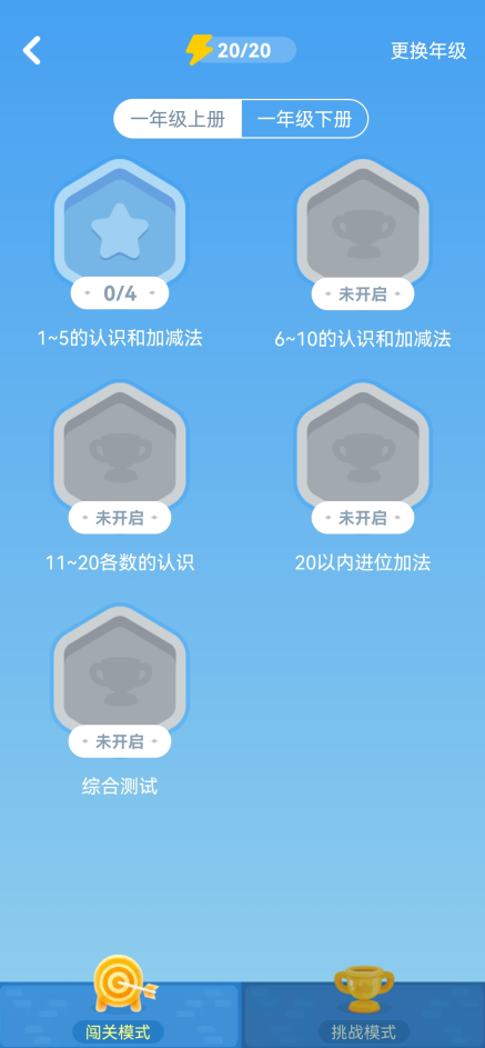9、点击右上角可以更换年级,这个练习最高只支持六年级。