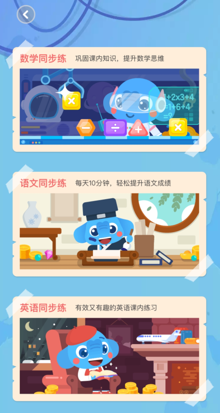 6、【同步练】包含了数学、语文、英语三门科目,还能进行PK和排行。
