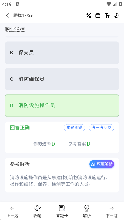 在屏幕下方则是一些题目操作,可以进行题目切换,解析等操作。