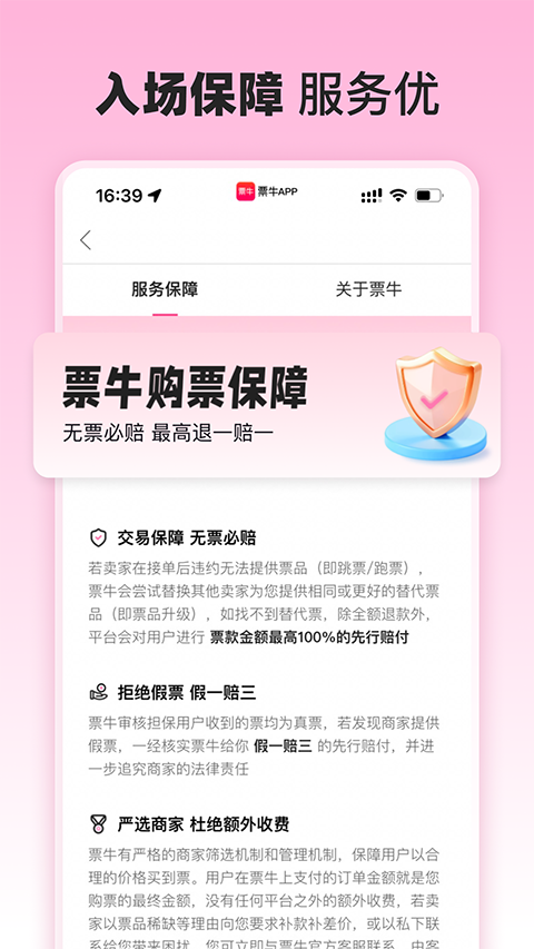 1、买得到(热门稀缺票) 当下热门的演出经常一票难求,而票牛网拥有强大的票务资源,保证了用户热销票的需求。对于市场上一些热门演出及演唱会门票紧缺的问题,很多网站在预售期就以售罄,而票牛就是为用户解决一票难求,持续性售卖真实二手票资源的交易网站,使得整个市场保持长期票源稳定,为用户提供价值! 2、卖的掉(有卖票需求的用户) 通过票牛网,不仅能买到票,还能将自己的闲置票挂起售卖,满足双向需求。然而供票方可通过票牛一站式销售手上现有的各类现场演出门票(演唱会、话剧、音乐会、歌剧、舞剧、戏曲、杂技、体育赛事等),购票用户也可以在票牛网找到市场上各种稀缺演出票,票牛会对出售票品价格按市场行情做严格控制。 3、买的放心(信用体系) 整个交易过程的事务由票牛网全权代理,并由网站来负责保证票务的真实性、交易的保障性、以及实现物流配送等服务。 所有在票牛购票的用户,如若在收货后发现票品的品质与描述不符,且与卖家协商未果,即可申请票牛网介入;票牛会根据票品的检验结果进行判定,如判定买家申请成立,则由网站向买家用户先行赔付。常见问题