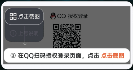启动游戏后,请按照指引在游戏登录界面点击扫码上号(部分游戏如王者荣耀需点击【QQ登录】,【使用其他QQ登录】,【添加账号】,【扫码授权登录】),随后在二维码界面点击租号王的【点击截图】按钮,耐心等待3~5秒后即可登录成功。