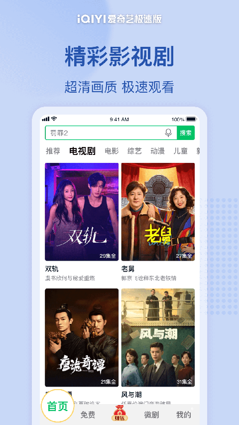 1. 畅享3万多部热门影视和综艺,还有上万部微剧免费看 2.《罚罪2》热门影视:黄景瑜王传君兄弟对决 3.《只争朝夕》女扮男装接近未来宰相 4.《逍遥》《双轨》《老舅》《唐诡奇谭》《风与潮》《大生意人》《唐朝诡事录之长安》《天地剑心》等热门影视综尽在爱奇艺极速版