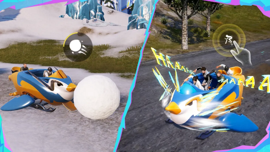 企鹅雪橇车:四人两栖载具 ☆可发射雪球,命中后使目标减速。 ☆支援多人协作驾驶,乘客座可提供支援加速。