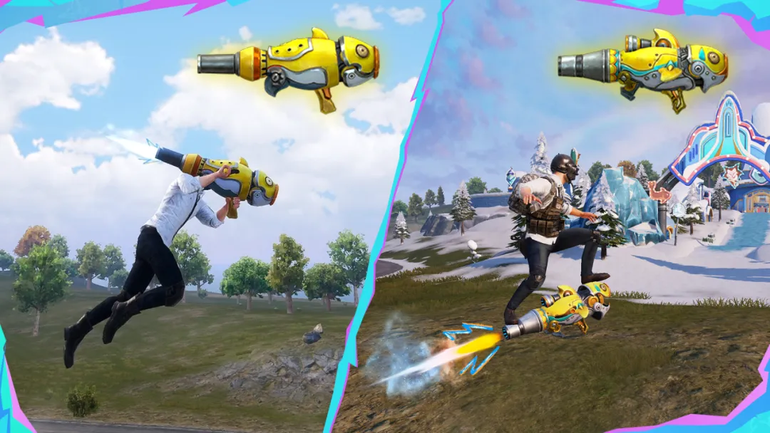 咸鱼火箭炮:核心战斗道具 ☆普通攻击:发射冰冻炮弹造成伤害,并于落点产生冰面; 冰面具有控制效果,敌方于冰面上无法开枪且移动受限。 ☆「火焰喷射」技能:喷射火焰并高速推进,分为地面/低空/高空三种状态; 滑动屏幕可调整移动方向与高度。 技能期间可以使用悬浮保持冲刺并自由瞄准开火。
