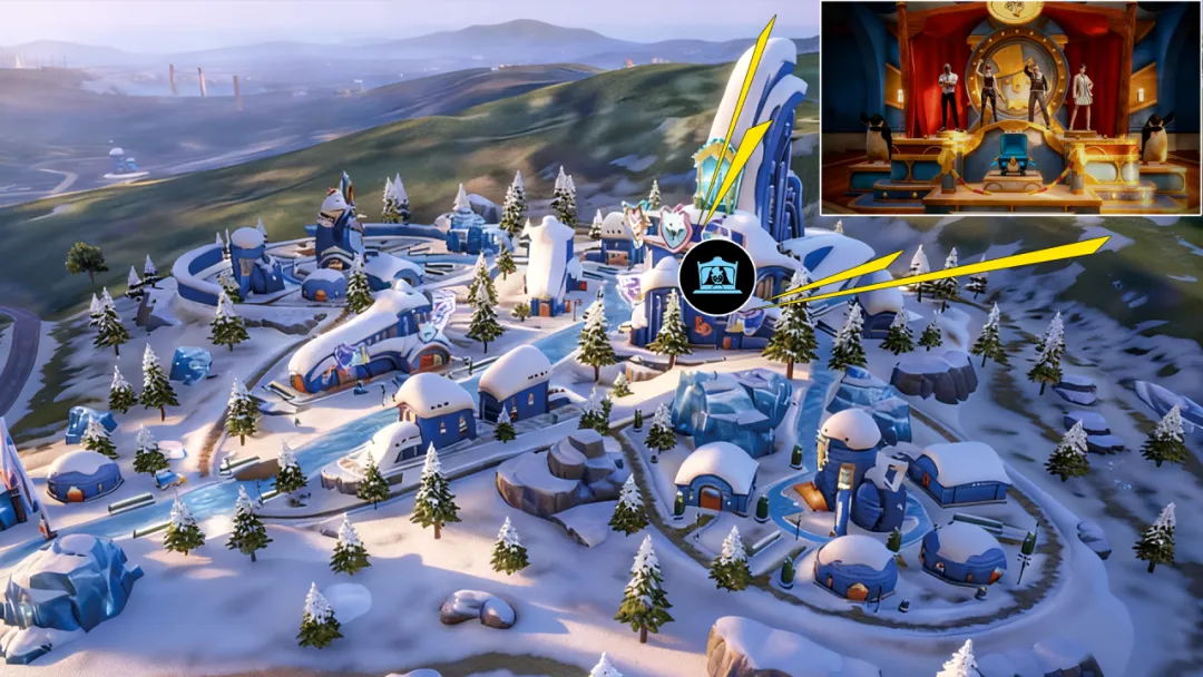 企鹅小镇 企鹅王国因冰川消融迁居新陆地后建立的家园,拥有近似人类20世纪水平的城镇文明与科技。 街道规划有序,建筑风格独特,既是物资储备的重要据点,也是充满活力的社区中心。 企鹅小镇内可乘坐动物雪车远距离移动。 小镇的中心设有最强队伍雕像,快来点亮它啦!