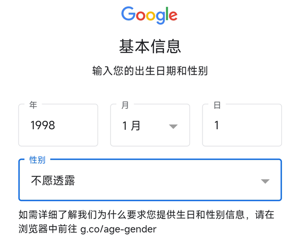 2、点击创建账号并填写所需的信息
