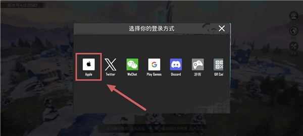 挂游戏加速器后打开游戏,进入登录界面选择苹果(Apple)登录,登录你刚才注册的苹果账号。