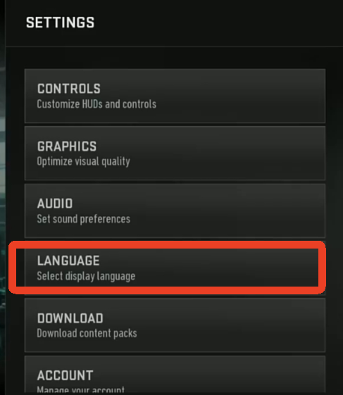 3、再次来到回到设置页面,点击【LANGUAGE】(语言)。