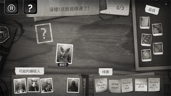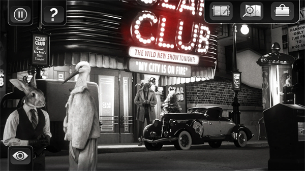 1、鸡头人身神探 利爪市是一座梦想着使任何种族的掠食者和被掠食者都能和平共处的独立城邦,不同种族的动物们抛弃了生殖隔离共同生活在这里。然而表面上风平浪静的城中其实充满了种族歧视与政治斗争。虫族与爬行种被排挤在外,捕食案件时有发生,贫穷人家竟然把自己的婴儿卖掉送上别人的餐桌。 在大年夜晚上,妻离子散又被停职,数着日子等退休的昔日神探桑尼竟然被一桩离奇案件找上门来。面对棘手的案情,桑尼不得不向上次见面时刚打了自己一身弹孔的曾经的搭档哈蒂求助。两人就像从前一样联手查案,过程中逐渐揭露出利爪市许多不为人知的秘密,而随着剧情的不断推进,我们也能逐渐感受到两鸡之间深藏着的兄弟情。 2、黑色电影风格 游戏过程中绝大多数画面都是黑白配色,整体采用了四五十年代的黑色电影(Film noir)风格,游戏方式偏向AVG,对话与文本较多,搭配上经典影视风格的配音,仿佛在看一部真正的侦探片。并且每次转场都有不同的过场动画,甚至有枪战、逃脱等桥段。游戏中还夹杂了许多讽刺与调侃,在粗犷的剧情中又不乏大量的荒诞幽默。 3、审问与案情梳理 与剧情相比,本作在推理方面稍显薄弱,主要依靠审问与梳理来推进案情,另外也包含为数不多的几个谜题。审问时根据对方性格,用不同方式提出问题,从嫌疑人口中套出答案。在案情梳理时自带详细提示,总体难度偏低。不过从案情真相来讲,故事稍显老套,是个人就能猜出是怎么回事。 4、细节满满 本作拥有30多个独特角色可供调查,而且每个角色无论是人物形象、声音动作甚至台词都非常贴合人物。比如蜥蜴会发出嘶嘶声,雪纳瑞警官的手毛让人看了十分想摸。众多人物们说的话也非常符合动物城邦的设定,比如“我滴个鸡神啊”、“他毛的”、“助我一翅之力”。而主角桑尼鸡冠上的弹孔不光是展示了细节,也时刻在吸引我们去探寻他曾经的故事。根据游戏中透露的片段来看,桑尼曾经的辉煌、桑尼与前妻的故事、桑尼与哈蒂的羁绊……这些都是有可能做成续作的内容。更新日志
