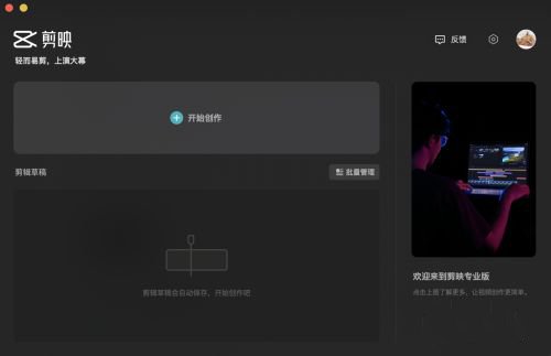一、画中画在哪儿? 1、首先打开电脑版剪映软件,进入后点击开始创作按钮。