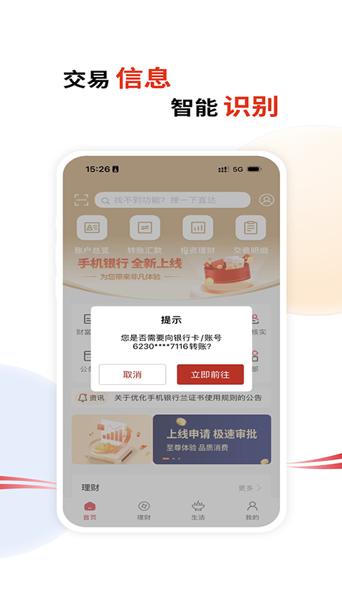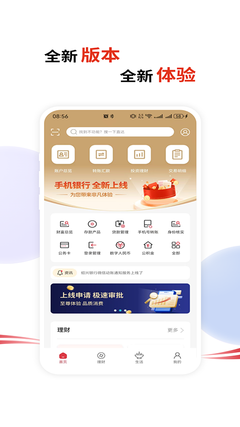 1、蓝牙key:提升手机银行转账限额,超大额(10亿级)转账安全无忧,高频转账操作不再繁琐。 2、智能推荐:依托零售ai营销大数据算法,打造“猜你喜欢”精准推荐模式,为客户推荐适合的产品。 3、智能语音:无需动手,一句话搞定转账、账户查询、理财、薪金煲购买,打造有用有趣有情的金融服务。 4、私行尊享版:私行客户无须前往网点,直接线上购买私行产品,独享高净值权益服务,更可一键联系财富管家。绍兴银行快捷支付如何使用