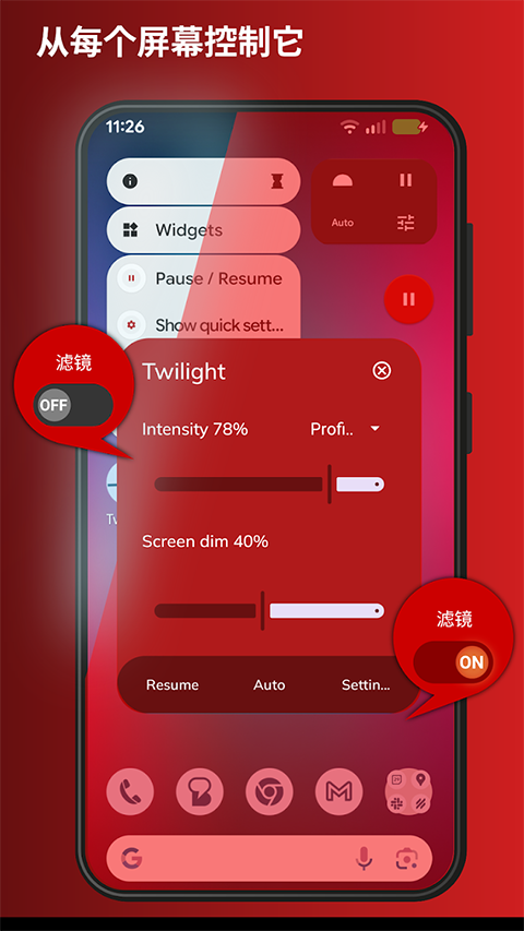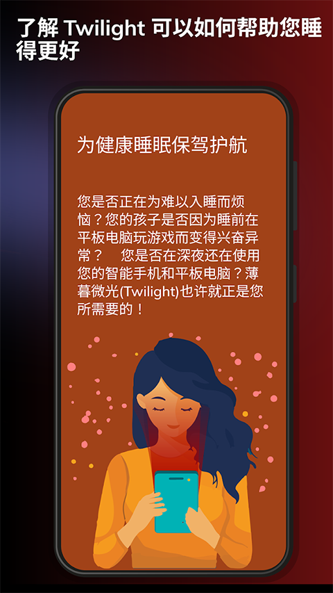 1、改善睡眠:恢复你的天然昼夜节律,获得更深层、更充分的休息。 2、眼睛保护:减少由刺眼的屏幕光线引起的眼部疲劳和偏头痛。 3、夜读模式:将屏幕亮度调低至标准背光限制以下——非常适合在床上阅读而不影响伴侣。 4、AMOLED 友好:经过优化以节省电量,并延长 AMOLED 屏幕的寿命(防止烧屏)。功能介绍