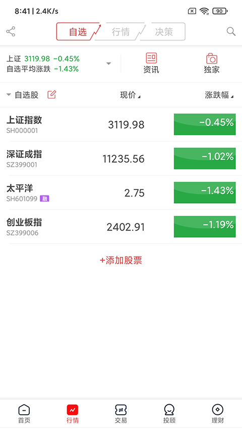 1、【界面简洁、登录人性化】 用户可通过手机账户登录软件,登录后,软件会自动同步PC端的自选股数据,用户可在网页端、QQ端、手机端同步查看自选股,您再也不用时时刻刻盯盘啦! 2、【独家提供港股、美股实时行情】 指数界面支持横屏展示,k线走势一目了然。除了提供沪深大盘指数,还提供港股实时行情,以及美股bats实时行情走势。概览国内外股市动态,让投资更安全,拓展投资视野,就有可能发现更多机会! 3、【股价提醒、及时把握买卖时机】 在无暇关注大盘走势时,用户可事先设置进行股价提醒,包括涨跌的上下限以及日涨跌幅的最大值,当任何一项数据超过限额时都将触发提醒,以便用户第一时间作出决策! 4、【多平台股票分享、炒股不寂寞】 用户可以将自选股股价、资讯、k线等信息通过微信、微博、邮件、短信等方式分享给自己的好友,让您和您的朋友不会错失任何有价值的信息! 5、【7*24小时精编财经资讯】 关于股市的新闻报道、各种传闻消息层出不穷,大部分股民深陷其中不知所措。自选股提供7*24小时精编财经资讯,覆盖海外市场,深挖影响大盘、行业、个股走势的重要资讯,投资风向尽在掌握!太平洋证券app怎么注册