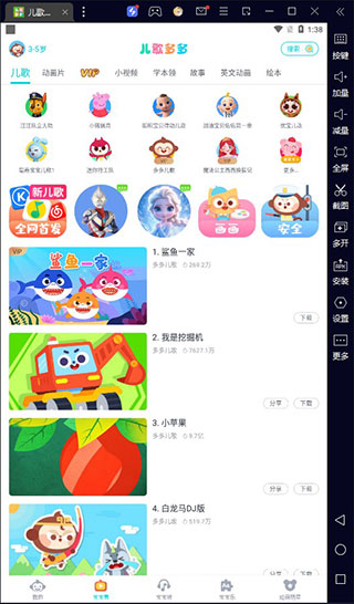 儿歌多多电脑版是需要借助模拟器在电脑上运行的一款儿童启蒙软件。软件为孩子们提供了丰富多彩的内容,包括百万首儿歌动画、睡前故事、正版精选动画片、国学经典启蒙教育、古诗词、有声绘本、儿童舞蹈教学、趣味手工画画等,旨在丰富儿童的学习体验,寓教于乐,激发其创造力。