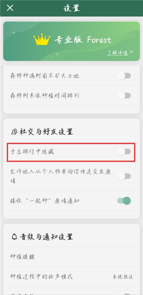 3、下滑找到【社交与好友设置】,将【于总排行榜中隐藏】打开即可。