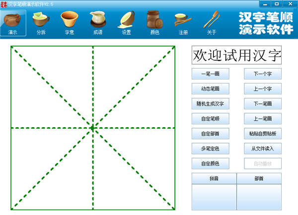 汉字笔顺软件是一款功能强大、操作简单、界面全新的专为初学汉字笔顺的人而设计的软件。软件包括汉字笔顺、笔画、注音、组词,目前这款汉字笔顺精灵已经成为每个小学生都必须必备的软件,受到了小朋友的热衷和喜爱。通过掌握了汉字的笔顺,一方面可以提高学生写字的效率,另外一方面可以把字写的对称、美观,漂亮,而且更便于汉字的排序、检索、信息处理。汉字笔顺软件现在模拟的是小学生使用的田字格书写汉字的方法将小学语文中的每个生字的笔顺进行直观、形象的书写演示,展示每个汉字在田字格中的位置,生动有趣的展示出来,寓教于乐,加深记忆,便于快速、准确地按汉字笔画顺序书写规范的汉字。并且还给出每个生字的注音、组词、笔画数,特别适合一年级学生及学龄前儿童和课文同步学习汉字生字。汉字笔顺电脑版已经成为了小学生学习汉字生字的学习助手。