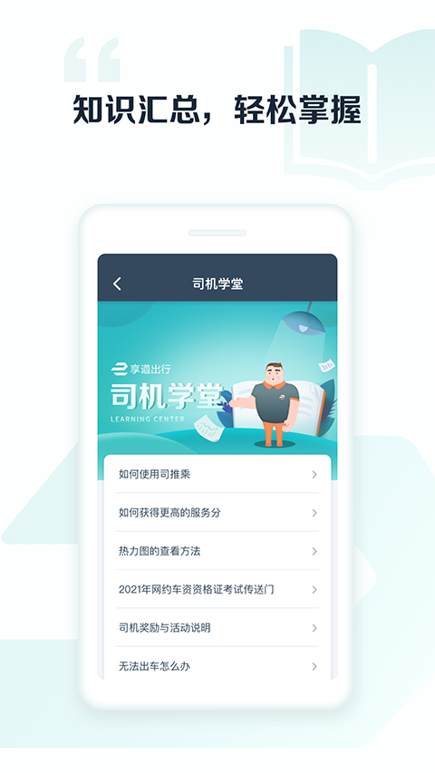 1、方便快捷 享道出行司机端app支持一键出车收车功能,方便快捷。 2、司乘平等 享道出行司机端app具有关怀与激励机制,公平判责机制。 3、安全保障 行车记录装备,全天候确保司乘安全。 4、收入保底 每周保底薪资,您一月能拿4次工资,收钱收到手软。功能介绍