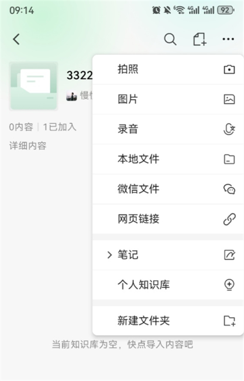 4、点击进入我的知识库点击右上角的+号,支持网页链接、本地文件多种方式添加知识库内容。