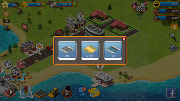 1、首先是一些最基本的操作,主要是建设方面和收益方面两部分。先来说一下建造,建造分为建筑的建造和道路的建造,建筑又分为居住房、商业建筑、社区公益建筑和装饰建筑。居住房很容易理解,是用来增加人口数量的,当城市中的建筑较多时,就需要足够的人手来进行经营,居住房价钱不同能够提升的人口数也不同,小编建议前期若是资金不够可以购买小的住房,到后期资金足够了一定要更换为大建筑,因为开阔新的地域的花销非常的大,所以后期很多建筑都没有地方建造,小编建议玩家选择将住房升级,以节约空间。