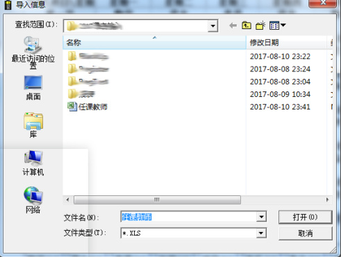 三、通过下部工具栏“导入”按钮导入任课教师信息,导入模板为系统文件夹下文档。