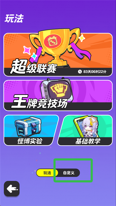 2、在玩法界面中,选择【自定义】。