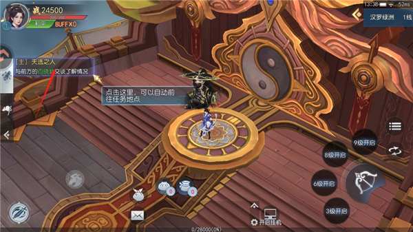 3、跟随主线剧情历练,完成江湖任务,途中可开启挂机模式,轻松推进修行进度。
