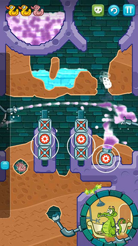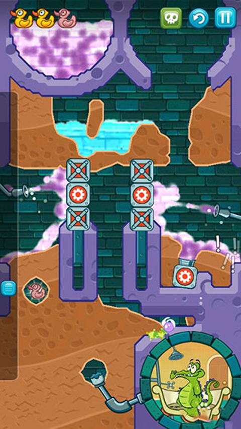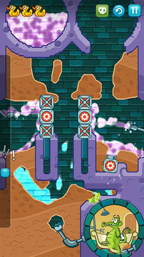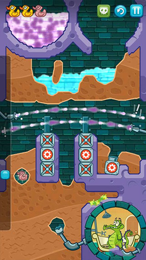1、原创故事和人物,玩家可经历四个独特的故事,主角分别为小顽皮、爱丽、大顽固和神秘鸭,包括超过500个精彩谜题! 2、小顽皮的故事小顽皮是一只生活在城市下水道里的小鳄鱼。他和其他鳄鱼有点儿不同--他充满好奇,待人友善,并且喜欢在劳累工作一天后好好洗个热水澡。但是水管有些问题,因此小顽皮需要你的帮助,把水导入他的浴缸里! 3、爱丽的故事爱丽是整个下水道里最具奇思妙想的鳄鱼。她古灵精怪、多才多艺,是一个小明星。如今,鳄鱼们发明了一台独一无二的通过水蒸汽驱动的乐器,迫不及待地想听她来演奏!帮爱丽得到她需要的水蒸汽就可以聆听她弹奏的经典迪士尼乐曲。 4、大顽固的故事大顽固,真正是最凶悍的鳄鱼,胃口惊人,从破轮胎到腐烂的鱼骨,几乎无所不吃,唯独不吃绿色蔬菜!用紫色的脏水清理大顽固盘子周围的绿藻,他才可以畅享他的“美食”。 5、神秘鸭在这个特别的章节,你要捉住这只神奇的会瞬移的神秘鸭子,一点小提示哦--时间就是一切!你会发现很多惊喜,包括史上最大的鸭子、巨鸭以及可爱的小鸭仔! 6、创意力学应用,玩家能看到形态各异的水源,发挥你的创造力解谜--相当刺激! 收藏品,挑战关,奖励关--收集为每个人物分别特设的物品,接受炫酷挑战,解锁奖励关!“三鸭通关”每个关卡,赢得无限荣耀! 同步,你可以将你辛苦得来的成就在游戏设备上备份同步。小鳄鱼爱洗澡怎么玩