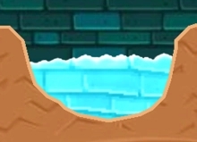 有新鲜度,新鲜的泥巴为深红色,不新鲜的泥巴为肉色,最后会变成可以手动凿开的土壤。保持新鲜的话,一是增加清水,二是让蒸气透过去,三是不让它接触石头和土壤。遇到泥浆会同归于尽。遇到毒水会变成泥巴,遇到熔岩无反应,能装进气球。另外,泥巴无视水藻,可以像气球一样在水藻上方。(结构图颜色:63,50,27)