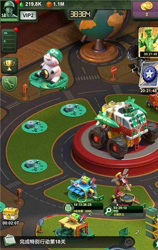 1、战争策略,玩具帝国 采集玩具资源,发展指挥部基地。联盟指挥部、空军指挥部、坦克营地、科技研究所,打造你的玩具帝国! 2、超能军种,海量收集 多款珍藏版英雄军种帅气来袭,技能装备自由搭配,玩家可全方位打造自己的专属玩具兵团。 3、全球同服,史诗对决 首创无限制跨服PK玩法,随时与全球精英玩家开启跨服战争,想要主宰这个世界,那就用实力来说话! 4、联盟BOSS,等你来战 与联盟成员协同作战,在盟主的指挥下一起来击败集团军BOSS吧,刺激的战斗和丰富的奖励尽在这里,赶快加入绿色兵团的玩具大乱斗之旅吧!兵人大战新手入门攻略