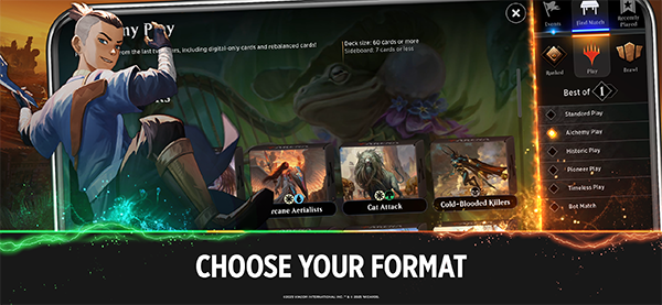 1、无需经验:从来没有玩过万智牌?没问题!万智牌竞技场的教程系统将带您了解游戏风格,这样您就可以找到自己的策略,并决定自己是否是用蛮力压倒对手的类型,是否更喜欢诡计,或介于两者之间。结识来自多元宇宙的角色,尝试法术和神器,让学习快速有趣地玩原始的奇幻收藏卡牌游戏。玩万智牌从未如此简单!收集卡牌以构建符合您个性的牌组,然后掌握与朋友战斗的策略,并成为开始所有卡牌的TCG的一部分; 2、在线竞技:探索奇幻世界,构建自己的牌组,玩各种游戏格式来收集卡牌,掌握多种策略,并与朋友或AI一起磨练技能。拥有轮抽和乱斗等多种游戏格式,15个可解锁的可收藏牌组,以及爆炸性的卡牌组合效果:理想的万智牌游戏风格触手可及!炫耀令人瞠目结舌的化妆品,例如头像、卡套和宠物,并收集每日奖励以扩大您的收藏,并构建反映您个人策略的强大牌组; 3、挑战和游戏:与您的朋友争夺荣耀,或参加游戏内锦标赛以获得激动人心的奖品!有了轮抽和乱斗配对,总有人可以一起游戏。特殊的游戏内活动提供令人兴奋的奖励,通过电子竞技预选赛,您的职业魔术梦想比您在竞技场超级联赛中想象的更近!排队参加休闲战斗,以自己的节奏磨练策略,或参加电子竞技预选赛和频繁的锦标赛,以炫耀自己的精通。 4、奇幻与魔法:潜入万智牌的奇幻位面:聚会,并通过万智牌的身临其境的传说和充满活力的卡牌艺术写下自己的传奇。仅使用最喜欢的角色及其最具标志性的咒语和神器,在多元宇宙中找到自己的道路,或创建一个只有你自己才有意义的叙事主题牌组。您的故事才刚刚开始!游戏玩法
