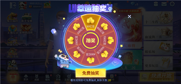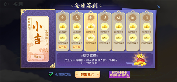 玩家可通过观看视频获得抽奖次数,可获得大量游戏豆。