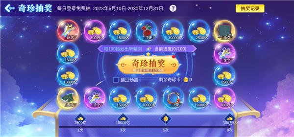 玩家通过获取奇珍币道具可参与奇珍阁抽奖,有机会大量获得指尖币奖励。