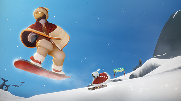 在到达环形竞技场之前,都是在进行滑雪,不需要担心迷路,只需要跟着白鸟走就可以了。到达环形竞技场后,可以选择在这边和伙伴进行比赛,在这边滑雪还是非常有意思的。