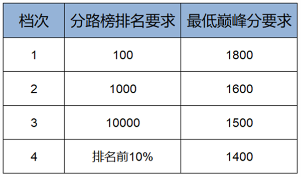1、巅峰分路排行榜各分路排名前10000的玩家可获得参加资格;