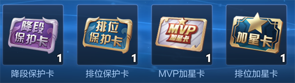 新赛季中【MVP加星卡、降段保护卡、排位保护卡、排位加星卡】将仅当前赛季生效,请各位玩家及时使用。
