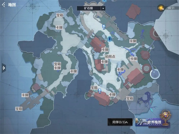 3、矿坑:1宝箱、2卡牌、1拍照点