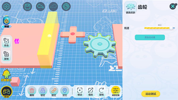 详情界面中可以调整该组件的运动及其他属性参数,不同的机关会有不同的参数可以调整。(比如齿轮可以调整转速)