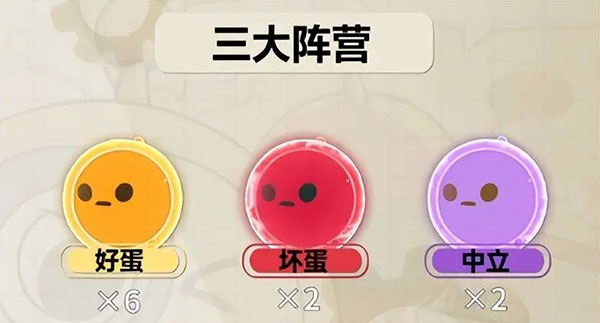 一、【玩家角色分布】 6名好蛋+2名坏蛋+2名中立蛋,总共十名玩家。