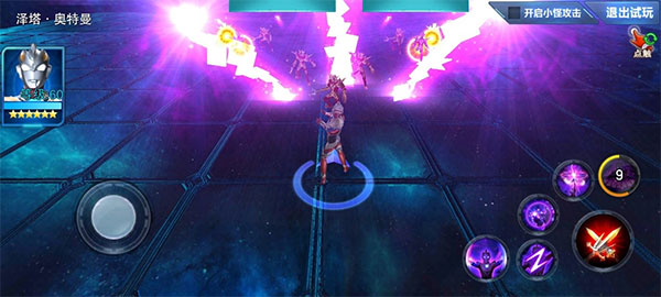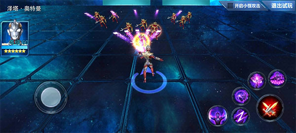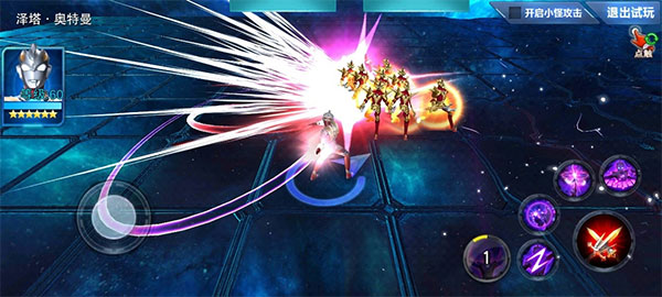 ③伽马幻象:冻结范围内敌人,借用前辈的力量,召唤迪迦、戴拿、盖亚的幻影对目标进行光线合击。