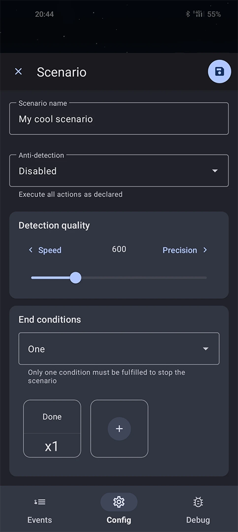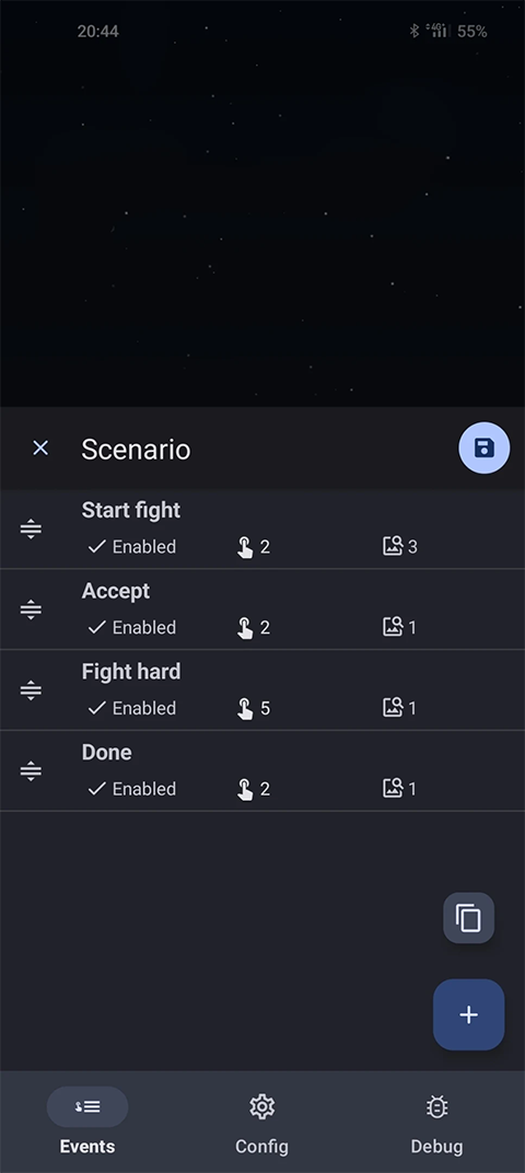 1、按场景组织行动; 2、点击、滑动或暂停; 3、从屏幕上捕获条件图像; 4、更改图像和屏幕内容之间的容忍差异; 5、组合多个条件图像; 6、配置执行下一个操作之前的最小延迟; 7、更改场景中操作的优先级; 8、通过 Android Intents 与其他应用程序交互;Klick'r自动点击器软件基本操作介绍