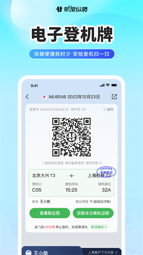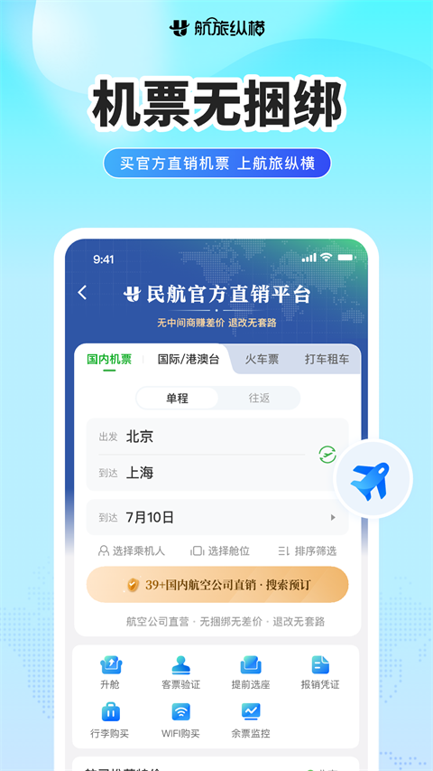 民航官方直销平台:来这买源头机票,0差价·0捆绑·0套路 电子登机牌:无需兑换纸质登机牌,一码快捷通行 航班动态:航班动态及时晓,官方数据任您查 手机值机:随时随地在线选座位,还能选状态和留言 用车:接送机延误免费等、误机必赔偿,租车场站取还便捷、免千元押金 酒店预订:专属客服7x24小时守候,海量酒店等你来订 机场雷达:手机变雷达,查看机场上空飞机实时动向 常客卡:支持不同航空公司的常客卡添加,方便管理更新日志