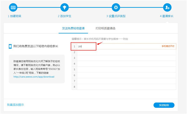 第七步:发送短信邀请家长